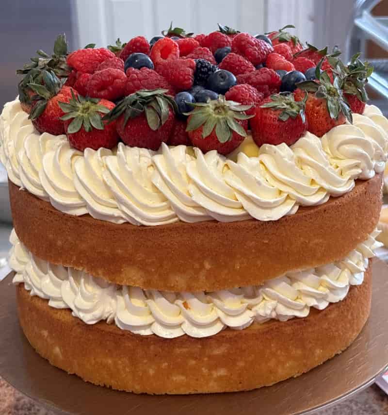 We ice our cakes with Swiss Buttercream; a rich buttercream made with butter, pasteurized egg whites, sugar. Please allow the cake to come to room temperature before serving for maximum satisfaction.